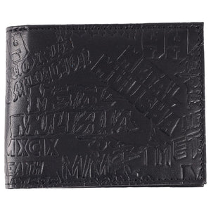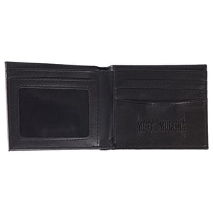 The Compound Metal Mulisha Bi-Fold Wallet. Features allover Metal Mulisha Logos debossed on the front and back of the wallet. On the inside right there is another debossed Metal Mulisha logo.