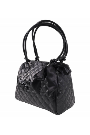 The Metal Mulisha Maidens Concealed Purse In Black is made from 100% PU quilted faux leather. This beautiful black quilted purse features details like knotted purse straps, a floral printed inside zipper pocket and a cell phone and side pocket for your belongings, a zipper to close all of your personal belongings in your bag with a simple faux leather pull tab, one of the favorite features of this bag is the concealed pocket in the back where you can store any of your hidden goodies or concealed carry, contrast shiny applique with merrowed edges at front and finally our beautiful black satin bow detail on the left purse strap.