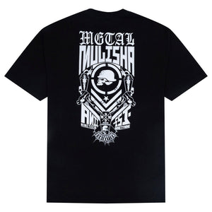 The Blue Collar Tee in Black features a front left chest hit and a large back hit in White.